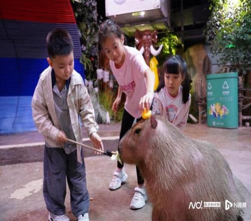 在正佳雨林生态植物园,你还可以和顶流男明星水豚“吞吞”,近距离贴贴,参加“萌鼠快跑”。还有树懒、梅花鹿等数十场动物见面会,轮番登场,大小朋友都能在笑声中学科普,交“萌”友,涨知识。