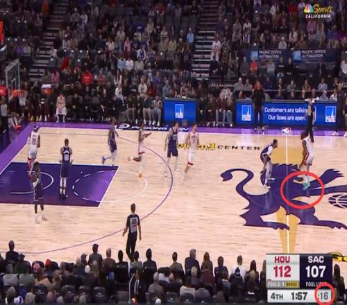 第四次同样是漏判,发生在距离加时赛结束还有1分13秒。申京在对方禁区内停留时间超过3秒,这是一次漏吹的三秒违例。火箭获利,国王吃亏。